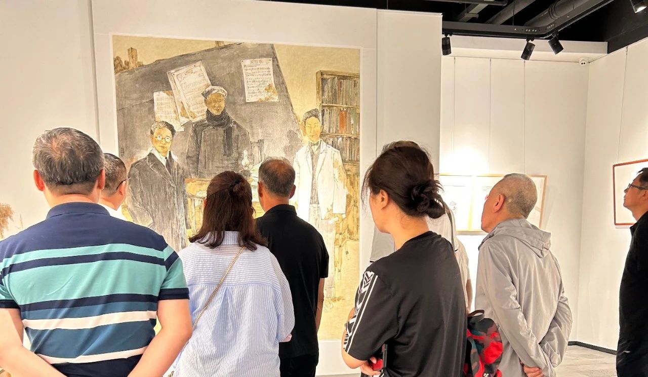 在大连优秀民革党员尹延坤的个人美术工作室中,大家既欣赏到了充满生活时令情趣的绘画小品,也被融合了传统绘画技法和现代革命题材的巨幅画作震撼,画中充分展示了早期革命党人坚决反抗和推翻旧势力建立新中国的革命风采。