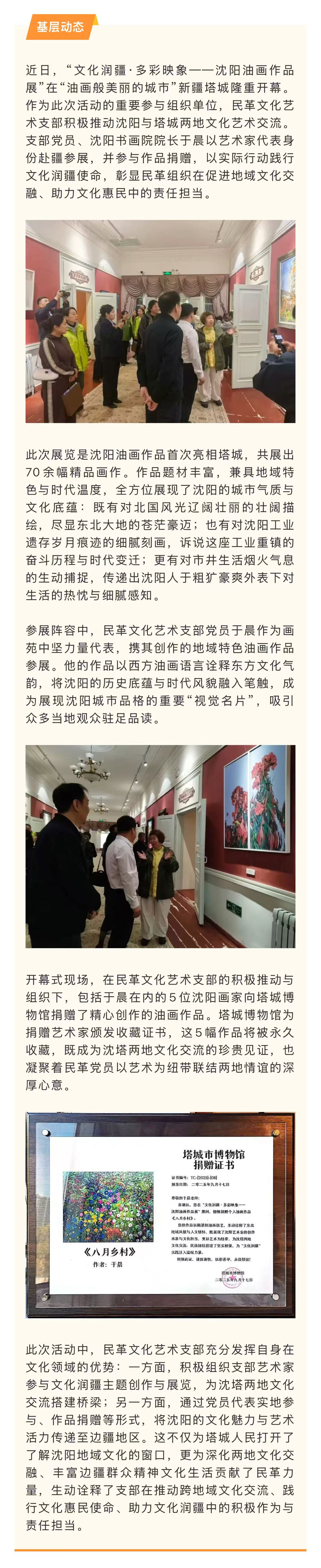 【基层动态】文化润疆添新篇 民革文化艺术支部推动沈阳油画展走进新疆塔城