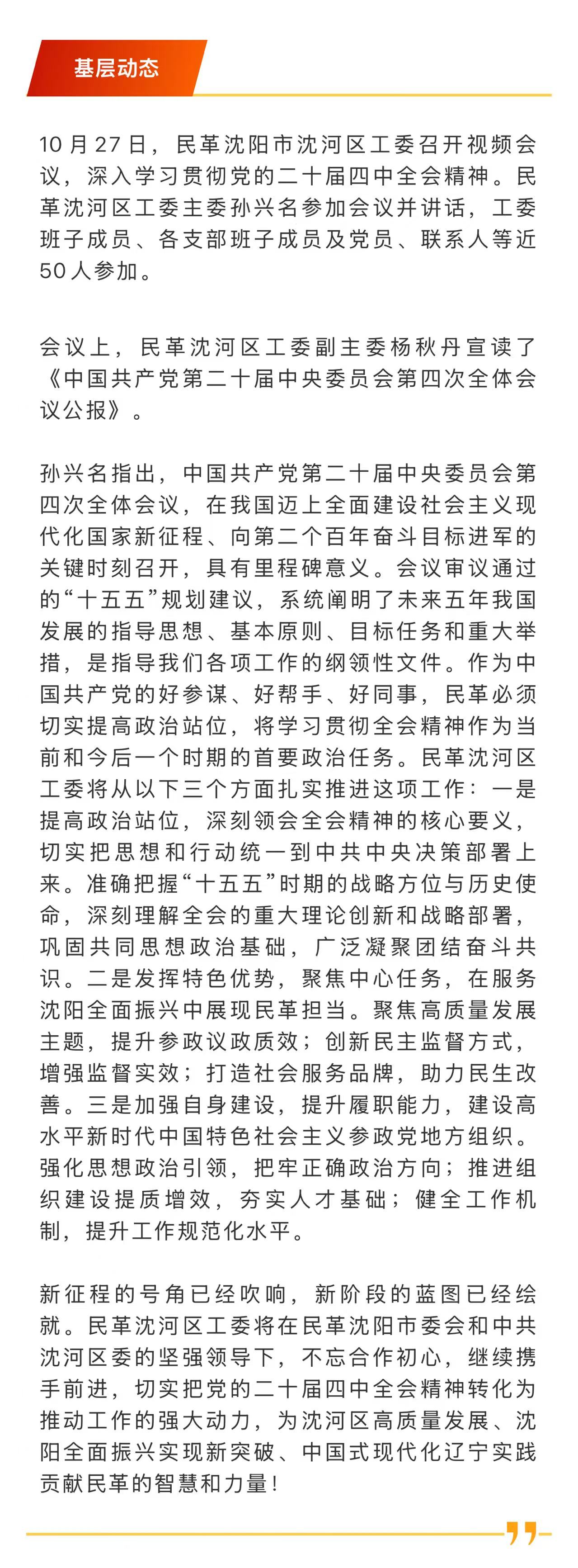【基层动态】民革沈河区工委组织召开专题视频会议 深入学习贯彻党的二十届四中全会精神