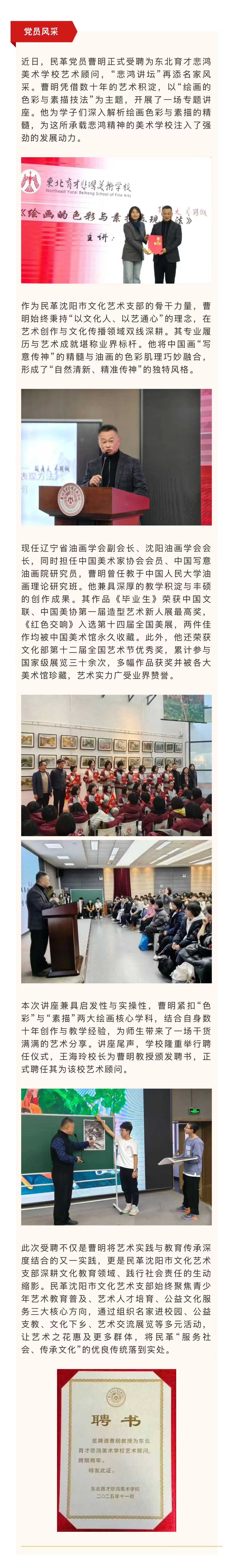 【党员风采】民革党员曹明受聘东北育才悲鸿美校艺术顾问 以艺术践行使命