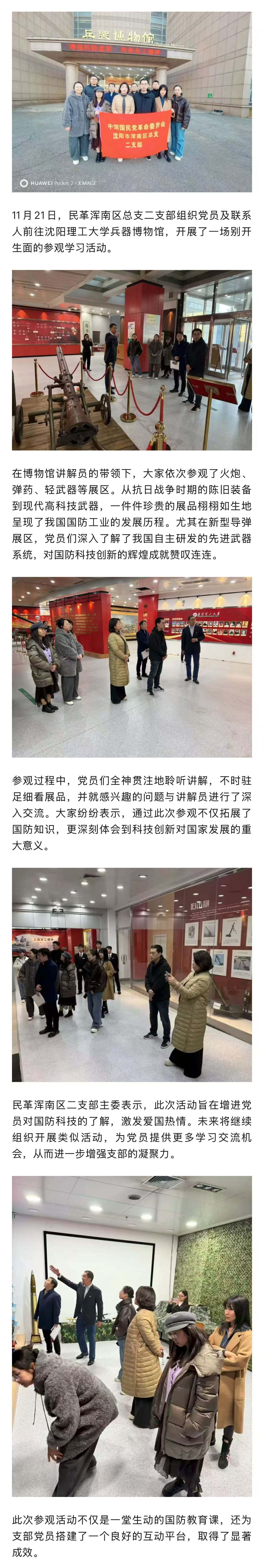【基层动态】民革浑南区总支二支部参观沈阳理工大学兵器博物馆