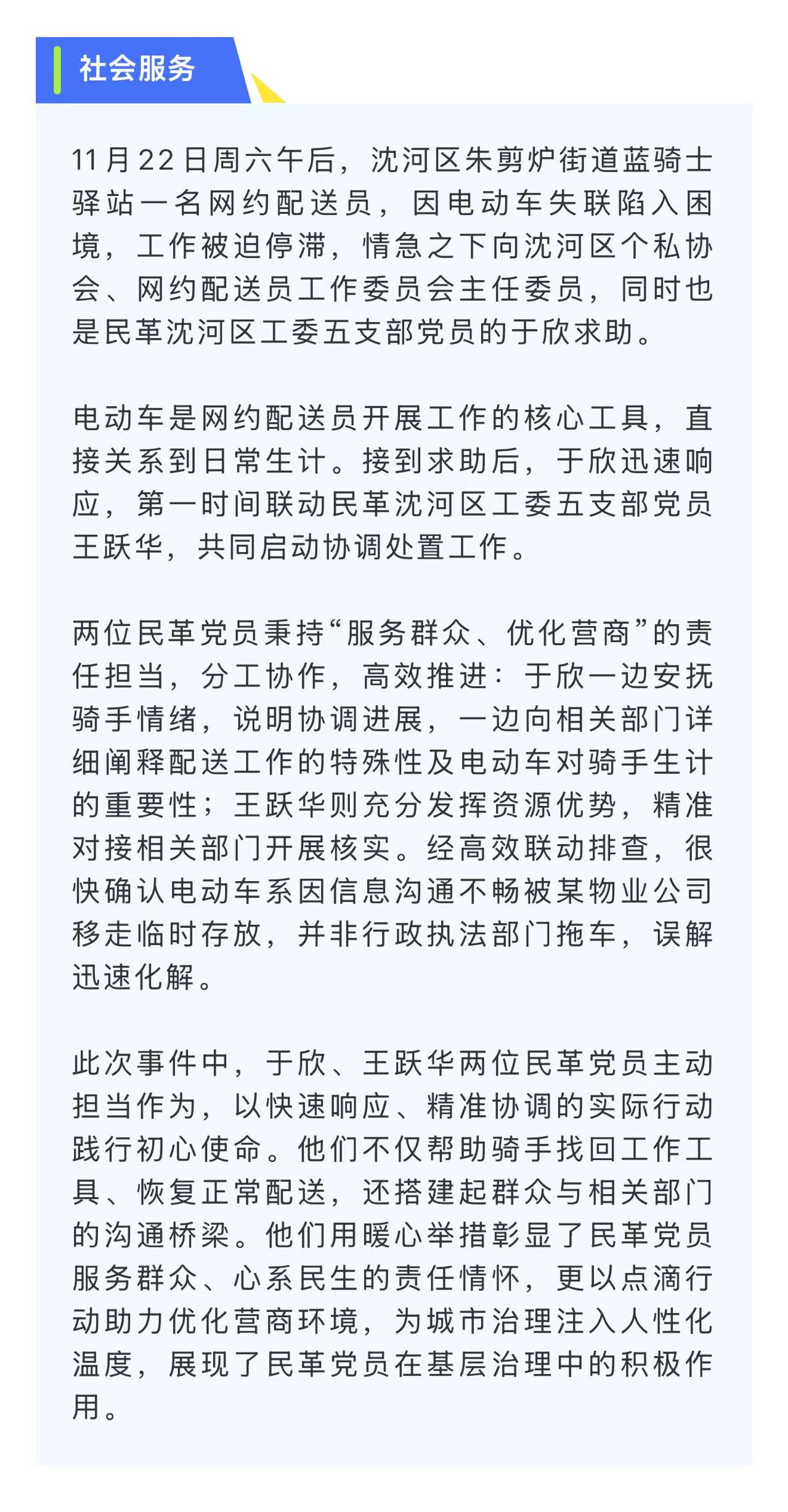 【社会服务】民革沈河区工委党员暖心相助解民忧 优化营商增温度