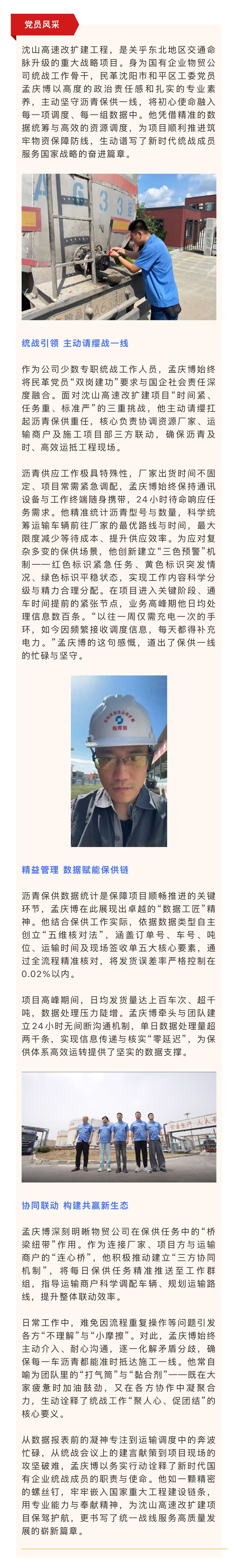 【党员风采】孟庆博:深耕保供一线 以担当护航沈山高速改扩建工程