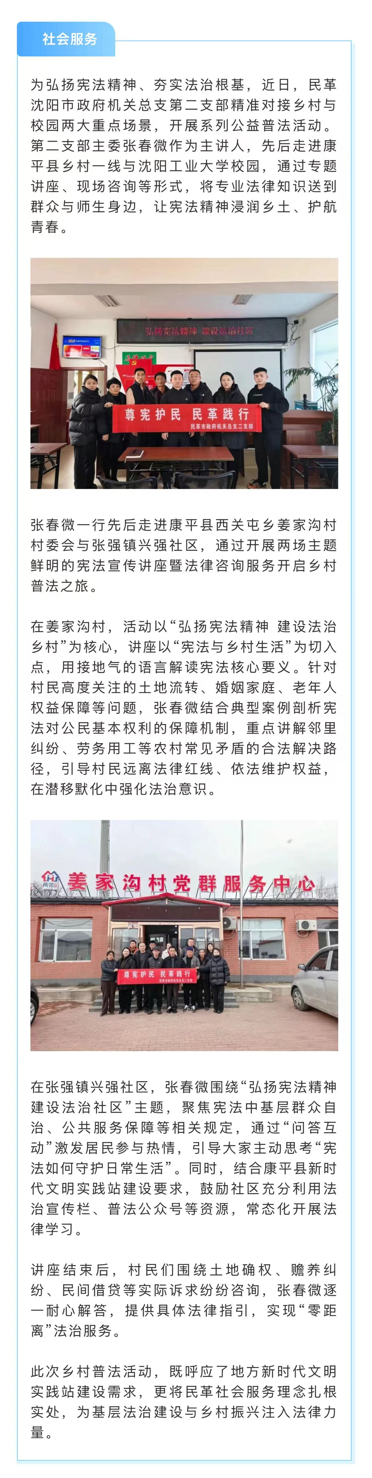 【惠悦民·幸福沈阳】弘扬宪法精神 法治护航乡村——民革沈阳市政府机关总支第二支部开展公益普法系列活动