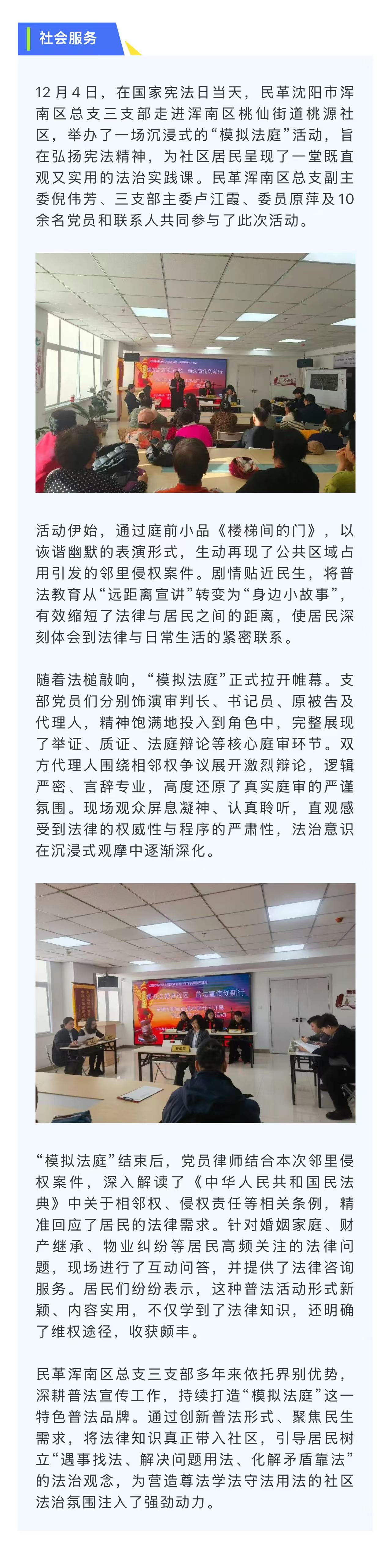 【惠悦民·幸福沈阳】民革浑南区总支三支部开展“模拟法庭”进社区系列普法活动