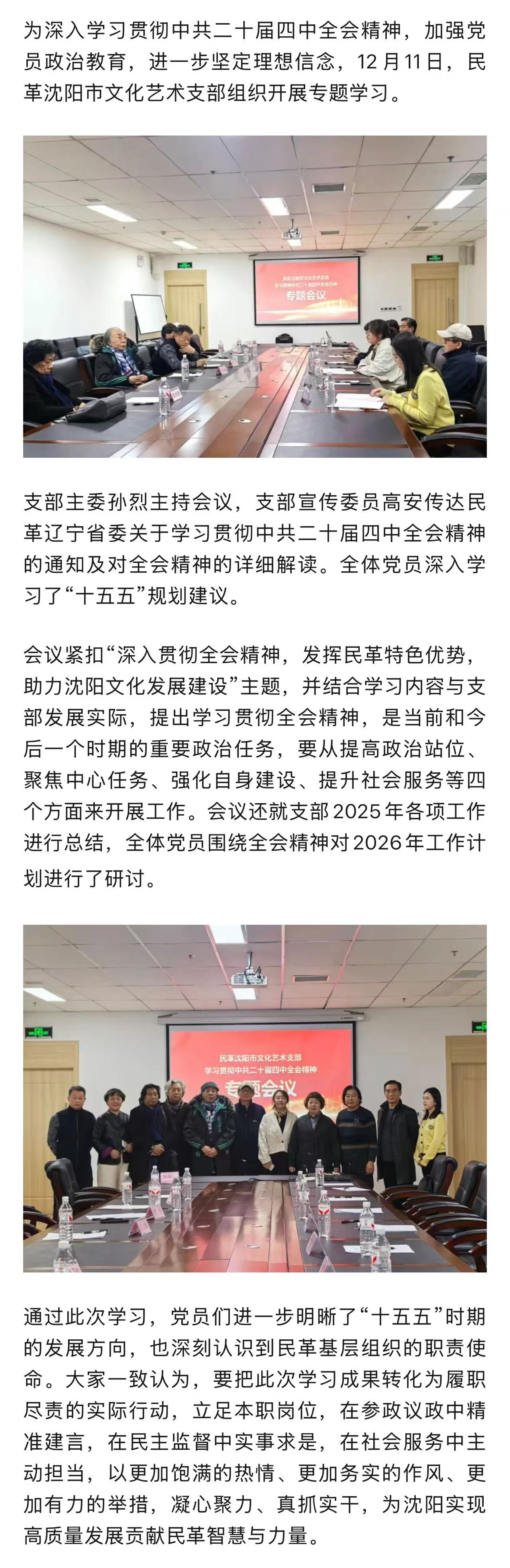 【基层动态】民革沈阳市文化艺术支部召开专题学习会议