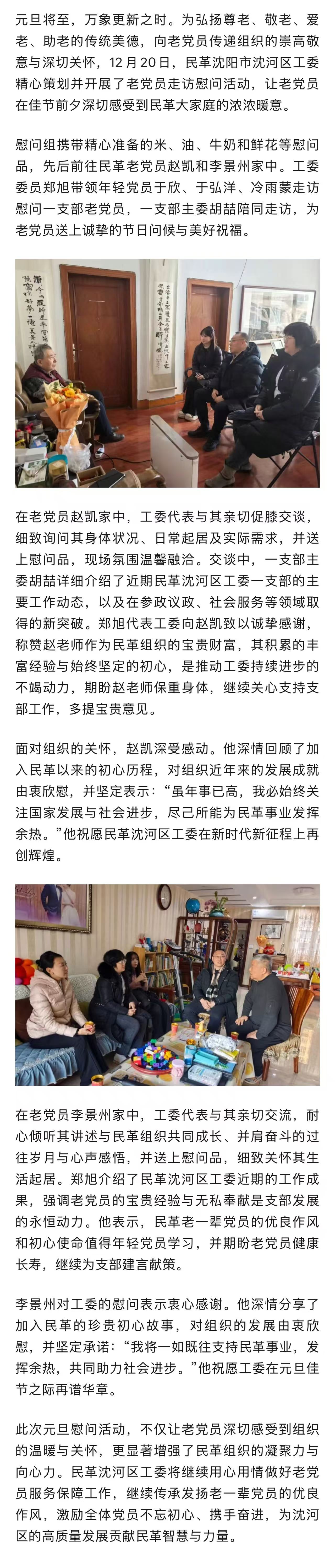 【基层动态】元旦送温暖 敬老情意浓——民革沈河区工委走访慰问老党员