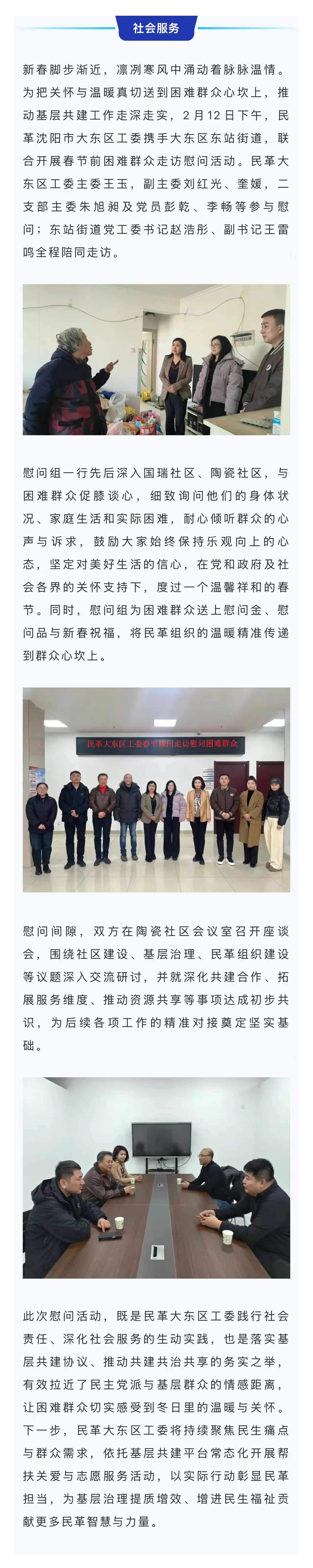 【惠悦民·幸福沈阳】情暖新春 同心为民——民革大东区工委走访慰问东站街道困难群众